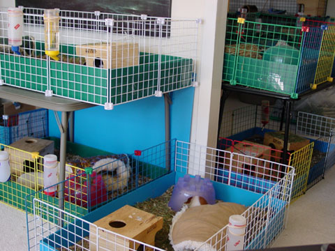 We welcome families or even school groups to come and visit. We provide as much information as you'd like (and have time for) on care. We can give hands on lessons on how to clip nails and sex guinea pigs. Our home is very clean (usually) and sets a good example on how to properly house and take care of guinea pigs. If you would like to stick around and learn about cage cleaning, well then, we'd be happy to oblige, as long as you are willing to help!