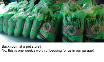 | . . . help with taking care of the piggies, cleaning cages, vet trips, and help with getting the word out about adoptions. We also need monetary donations to help pay for supplies, food, bedding, hay, and veterinary expenses. But we especially need BEDDING! We go through approximately 20 bags of CareFresh a week at cost of $300 a week. We refill the refrigerator every 2 to 2½ days at a cost of approximately $150 a week. Please help us help the piggies. It is a huge financial burden and both Cavy Spirit and the piggies would appreciate any help you can offer.