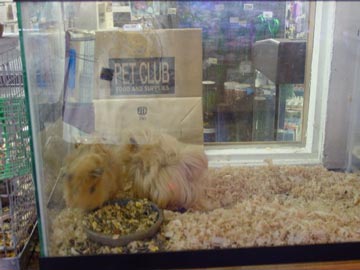 The two male guinea pigs supposedly went to a vet. Chris, the store manager, didn't know the status. Were they treated? He didn't know. He said they were planning on returning them back to the distributor on Tuesday, just like the other two females. He wouldn't let me look at them. The good news is, they are no longer going to carry guinea pigs. Chris said, "We're not going to carry guinea pigs no more." Why? "I don't want to deal with the heat." I asked about rabbits. No, nothing big, he says. He doesn't want the complaints. It has absolutely nothing to do with the animals, of course, just the hassle.