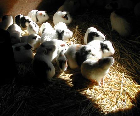 Sunday, 9/2/01 Received a call from one of our adopters that they had guinea pigs in a small animal room, that they started carrying them 3 weeks ago, and that they were in DISGUSTING, DEPLORABLE conditions. 2 Adult females, looking ragged, in a 10 gallon filthy aquarium with flies everywhere. Another pair of males in a larger, but wire bottom cage with CEDAR shavings underneath the wire, with HAMSTER food in the bowl, and FLIES everywhere. Of course, the whole room STINKS.