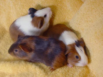 | Palomino. Young female American, tricolor (no photo). She was born in August and just a sweetie. She went to a very nice home to live a beautiful female piggie who is 7 years old. (1/4/02) | |