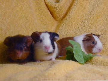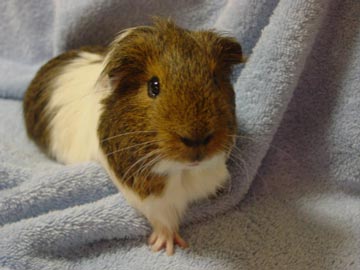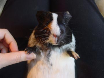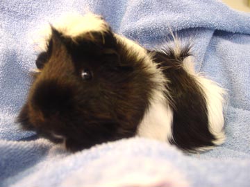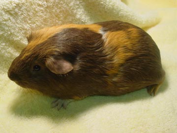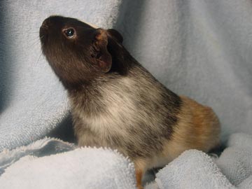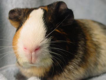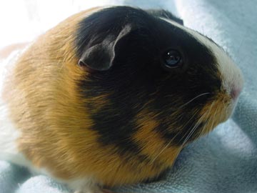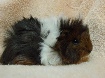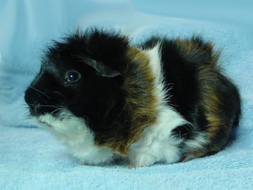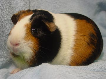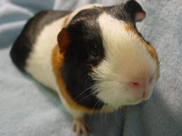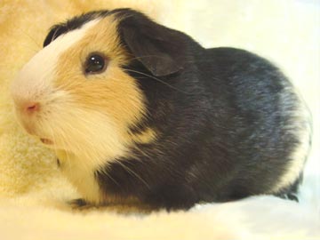| Patches, a nice, tri-color American female went to live with a very cute neutered male in a great piggie home. We didn't have her long enough for a photo shoot, but will likely have updates in the not too distant future. (12/29/01) | |