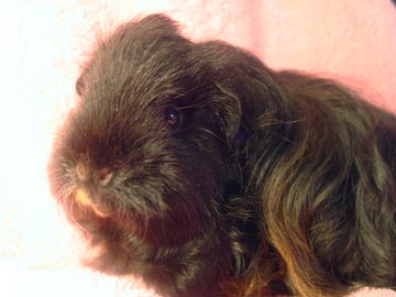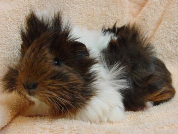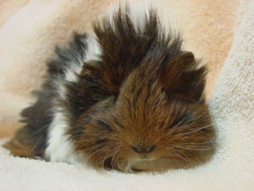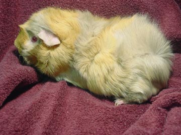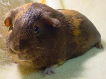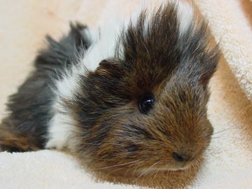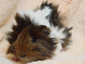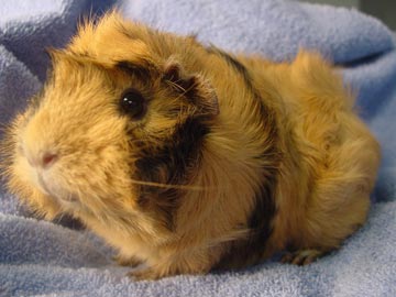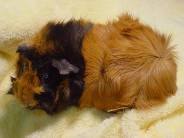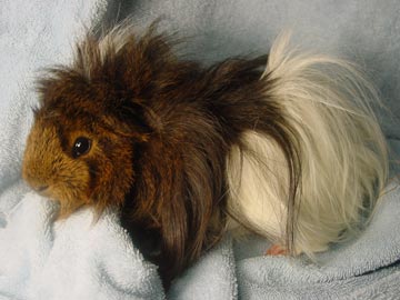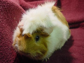 |  Star Fire. Adopted 9/8/01. Went to a nice new home with a young new male pal. Start Fire was an intact male Teddy who came from the Peninsula Humane Society. Another piggie saved! | |