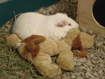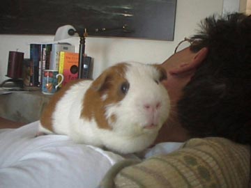 |  Angel. Male, went with another male piggie. He was an older piggie, but a real gem of pigster. Update (12/13/01) Angel is doing well. He and Buzzy are getting along fine. I'm thinking of adding a second story onto their cage as a Christmas present. I think they would really like that. At least it would be something different. | |