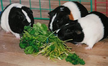 |  Piggy Sue, Lola, and Penny. These three girls went to a great new home. Jill is also a sometimes foster home for us, so we know these piggies will get the best care! (10/18/01) | |