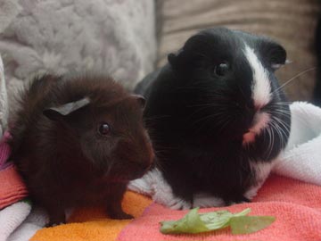 |  Sweetster. Female (on the right) paired up with a lonely pet store piggie. | |